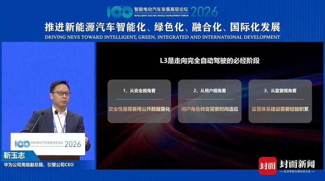 4月11日,封面新闻最新消息,华为智能汽车解决方案BU CEO、引望公司CEO靳玉志在2026智能电动汽车发展高层论坛上发表主旨演讲时指出:“2026年是全球自动驾驶开启的元年,L3是走向完全自动驾驶的必经之路。”
